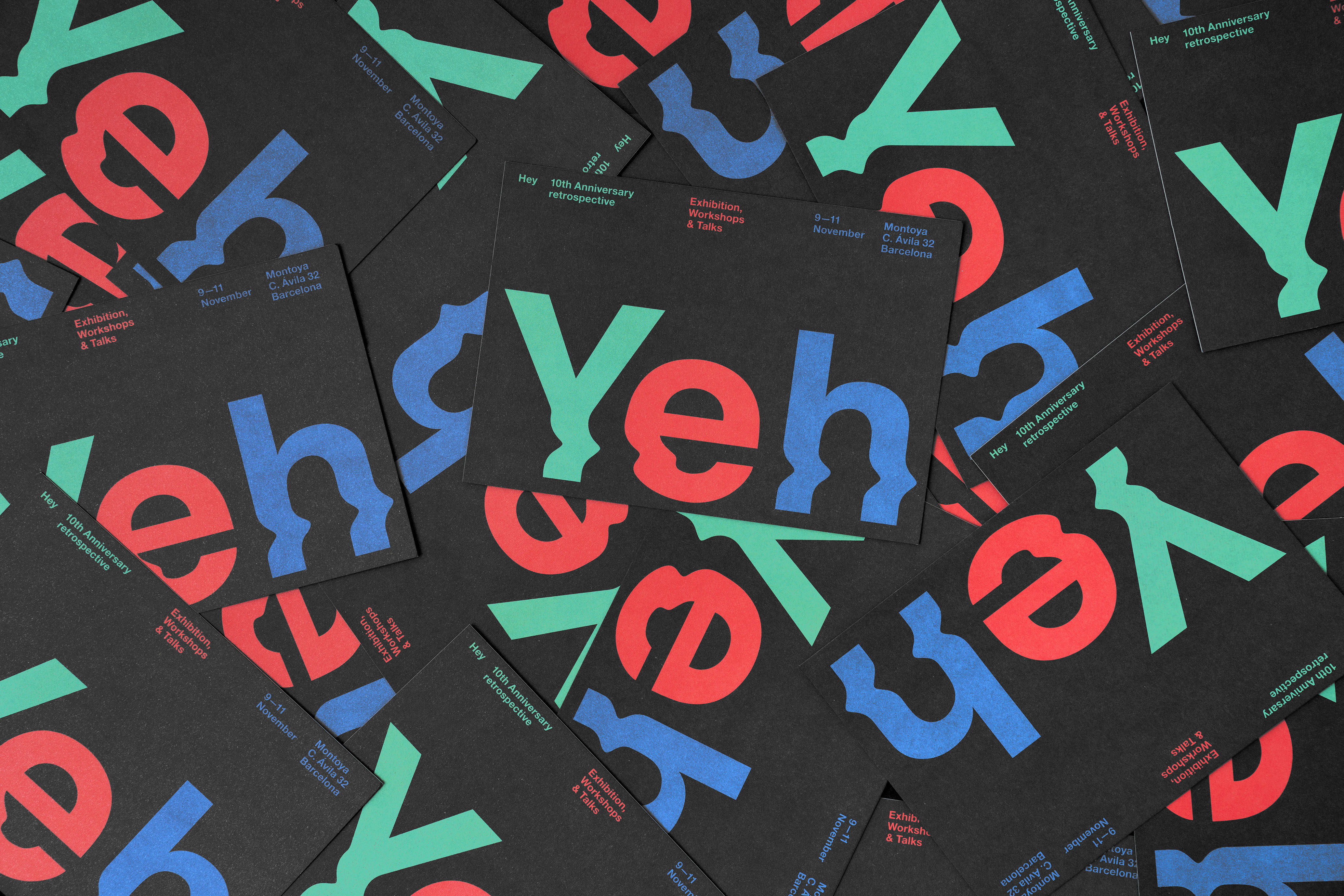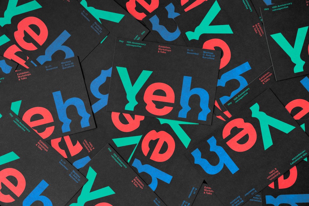 Yeh es un proyecto que celebró la primera década de Hey. Contó con una exposición y diferentes actividades creativas celebradas en el espacio Montoya de Barcelona. Yeh es Hey al revés, un nombre conceptual creado por la agencia de comunicación Usted, que habla de la retrospectiva del estudio como si se miraran en un espejo.
