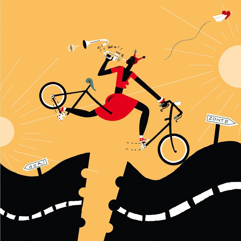 Lo siguiente es dibujar en un cuaderno, cualquier cosa, con lo que tengo a mano, sin filtros. Según los plazos de entrega, puedo estar así semanas. No defino las ilustraciones, pero saco cosas aleatorias, elementos, personajes, espacios, objetos, formas, e intuyo relaciones entre los elementos. Llegados aquí me pongo a construir con intencionalidad. La fase final, la realizo con tableta gráfica y sin bocetos, trabajando a partir de tres o cuatro elementos sueltos.