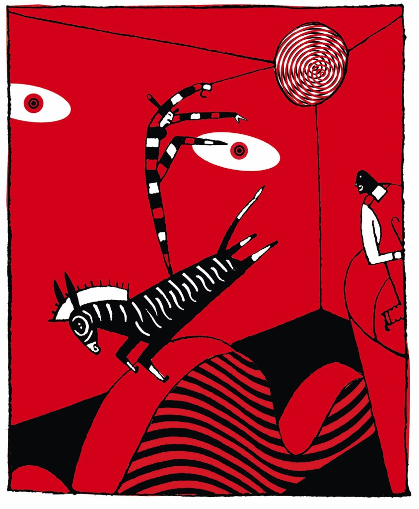 Además de su impacto estético, tiene capacidad para generar metáforas visuales y conceptualizar ideas, ¿cuál es su verdadero sentido? Hay distintas maneras de entenderla y practicarla. Una es la decorativista, más formalista, que no necesariamente excluye las cualidades que señalas, pero que pone el acento en el impacto de la imagen más que en el significado. Es la tendencia mayoritaria, creo, y la que mejor se adapta a producciones de uso efímero, incluyendo los libros ilustrados. Va asociada a la idea de que ilustración es dibujo ‘bonito’ –sea lo que sea que se entienda por ‘bonito’–.